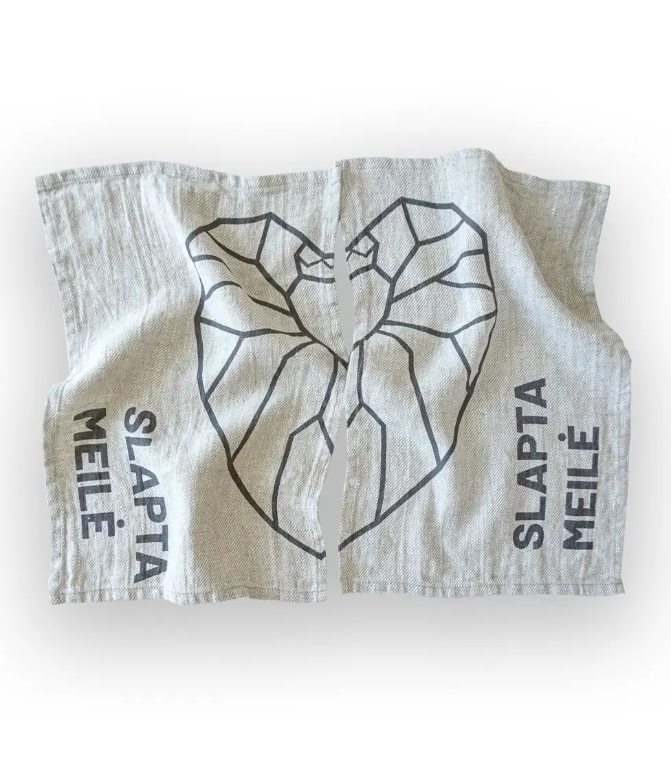 Julia Janus ir Decoflux kolekcija SLAPTA MEILĖ. Barbora labai mėgo perlus, o Žygimantas Augustas juodą spalvą. Todėl šios kolekcijos  pagrindinės spalvos  – pilkojo perlo ir grafito. Širdies simbolis naudojamas ant kolekcijos modelių nupieštas interpretuojant Renesanso epochos ažūrinių juvelyrinių papuošalų stilių. Grafinėje širdyje paslėpta  karūnuota širdis- Vilniaus amžino romantinio ryšio simbolis.  Rankšluosčiai pagaminti iš 100% minkštinto storo lino audinio.