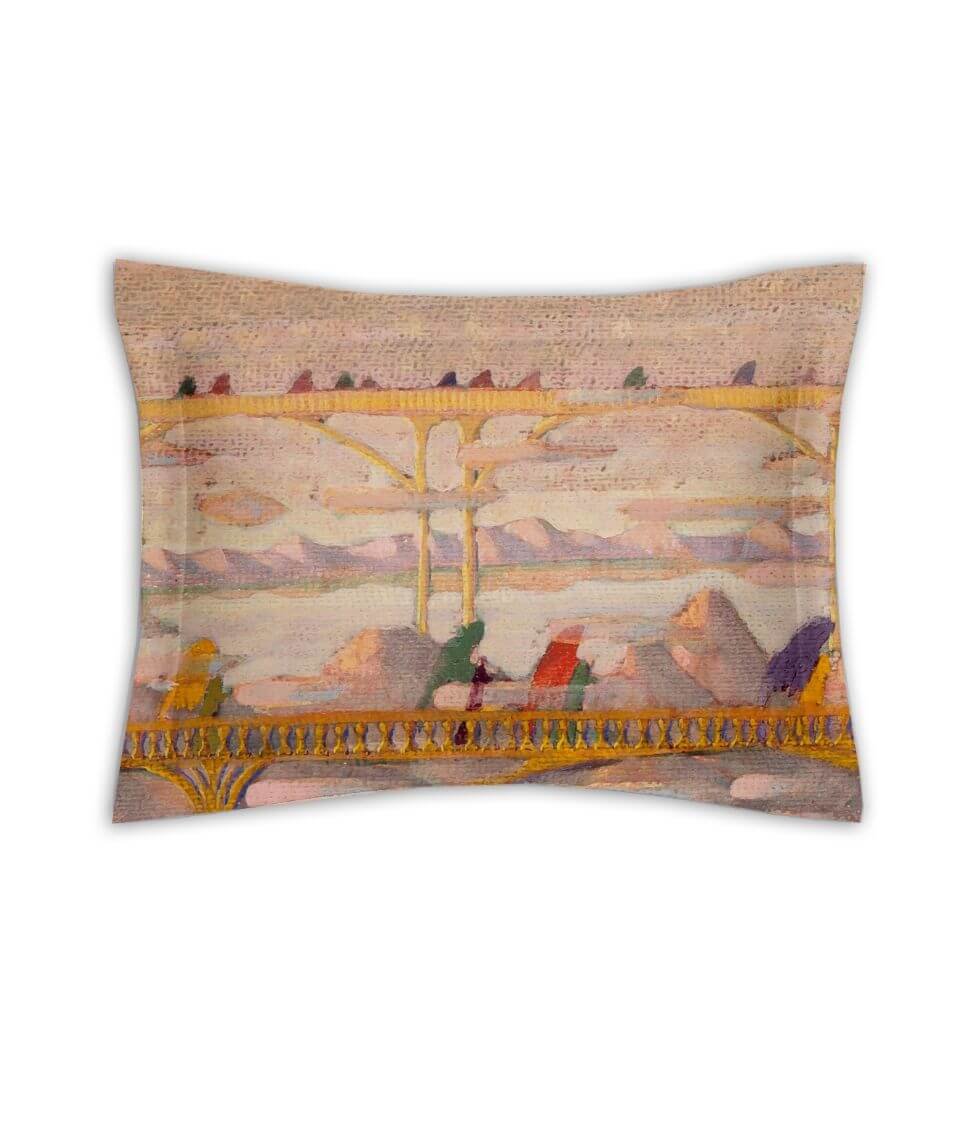 DecoFlux dizainerių komanda pasinėrė į Čiurlionio meno pasaulį, siekdami sukurti kažką ypatingo, kas ne tik pagerbtų jo palikimą, bet ir praturtintų šiandienos interjero dizainą. Šis pagalvės užvalkalo dizainas atspindi Čiurlionio „Angel Prelude“ paveikslo subtilumą ir dvasinį gilumą. Švelniai derinamos spalvos sukuria mistišką harmoniją, primenančią angelų sparnų šviesą ir pasaulio aušros momentą. Kiekviena linija čia simbolizuoja nežemišką harmoniją, o spalvų šokis – tą tylią melodiją, kurią, atrodytų, girdi tik siela. Pagalvės užvalkalas siūnamas iš dviejų dizainų „Angel Prelude“ ir „Reflection“, siekiant atskleisti žmogaus vidinį pasaulį.